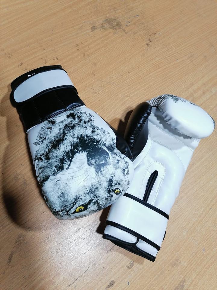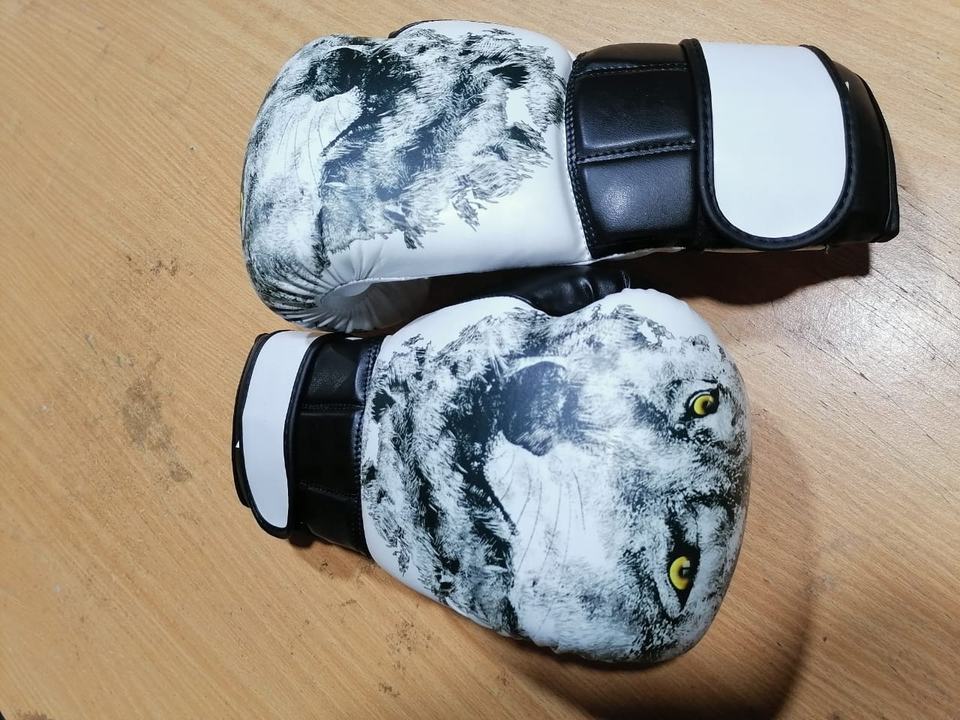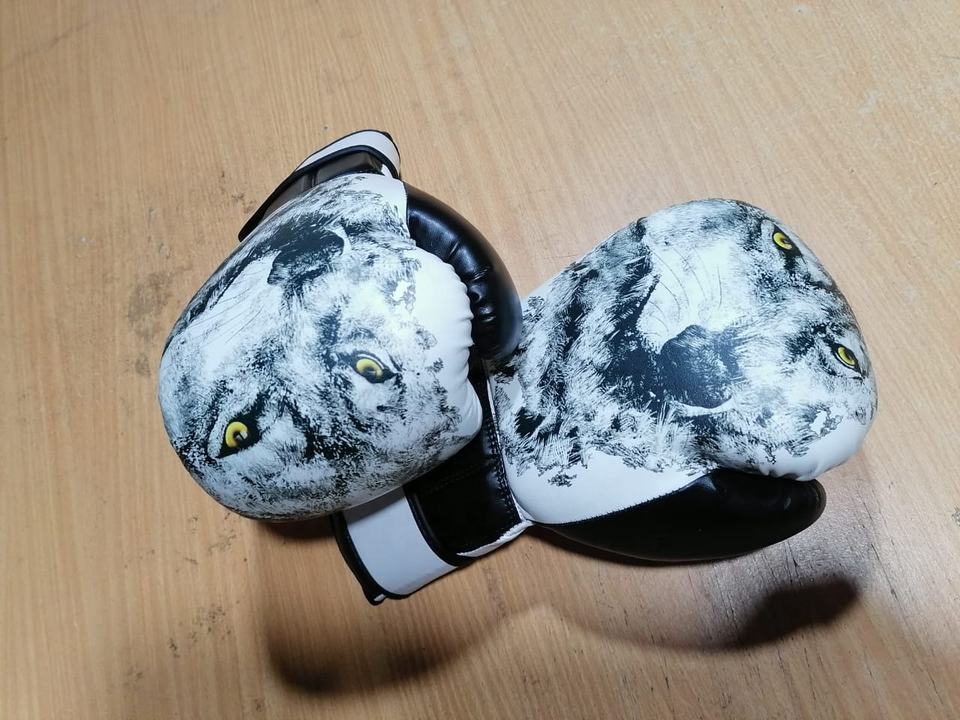 ถุงมือชกมวยหนังวัวพิมพ์ลายกราฟิก 3 มิติ แบบสั่งทำพิเศษ พร้อมโครงสร้าง 4 ชั้น ระบายอากาศได้ดี แห้งเร็ว ปิดด้วยแถบตีนตุ๊กแก