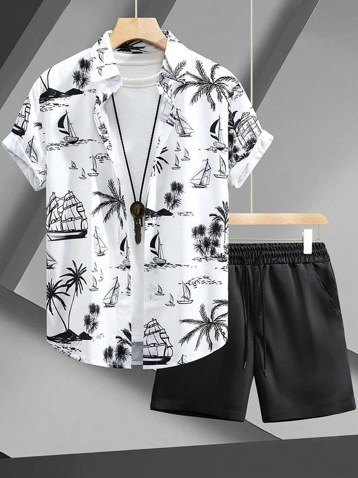 Men Printed Shirts Shorts Set