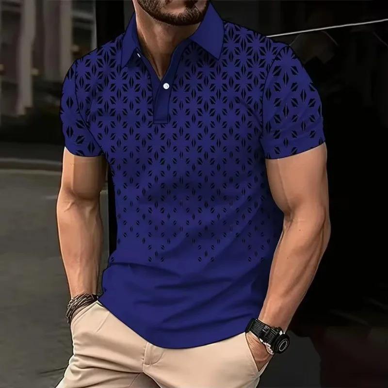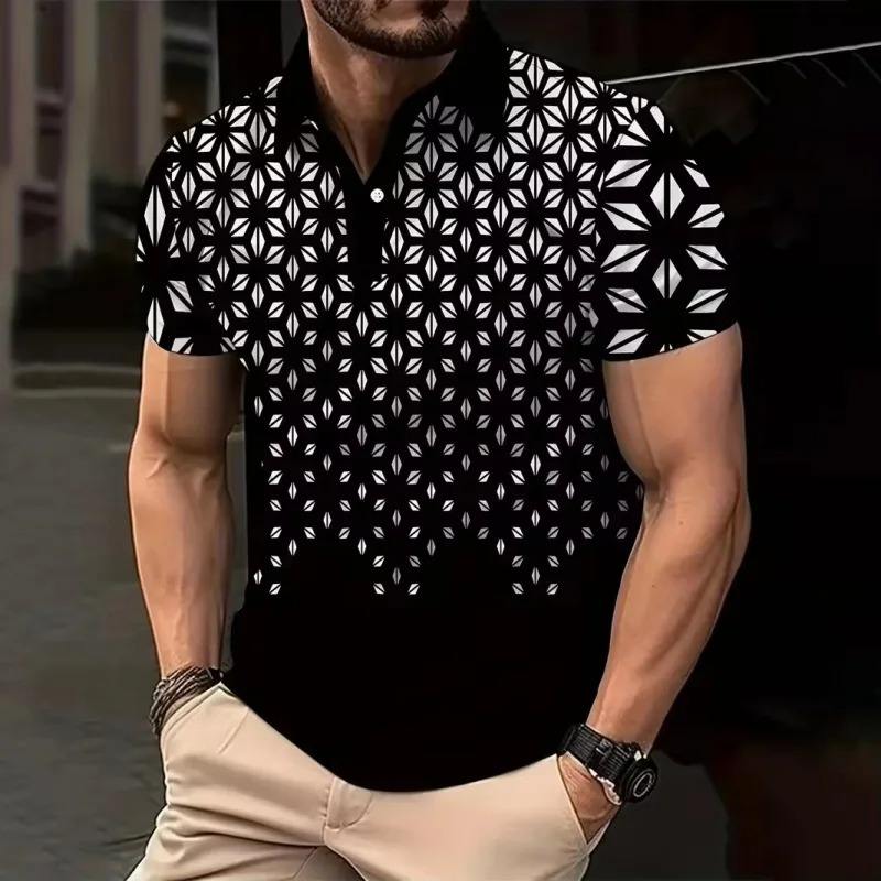 เสื้อโปโลพิมพ์ลายเรขาคณิตสีสันสดใสสำหรับผู้ชายเสื้อยืดลายแฟชั่นเรียบง่ายเสื้อแขนสั้นทรงหลวมแนวสตรีทสำหรับฤดูร้อนเสื้อยืดมีปก
