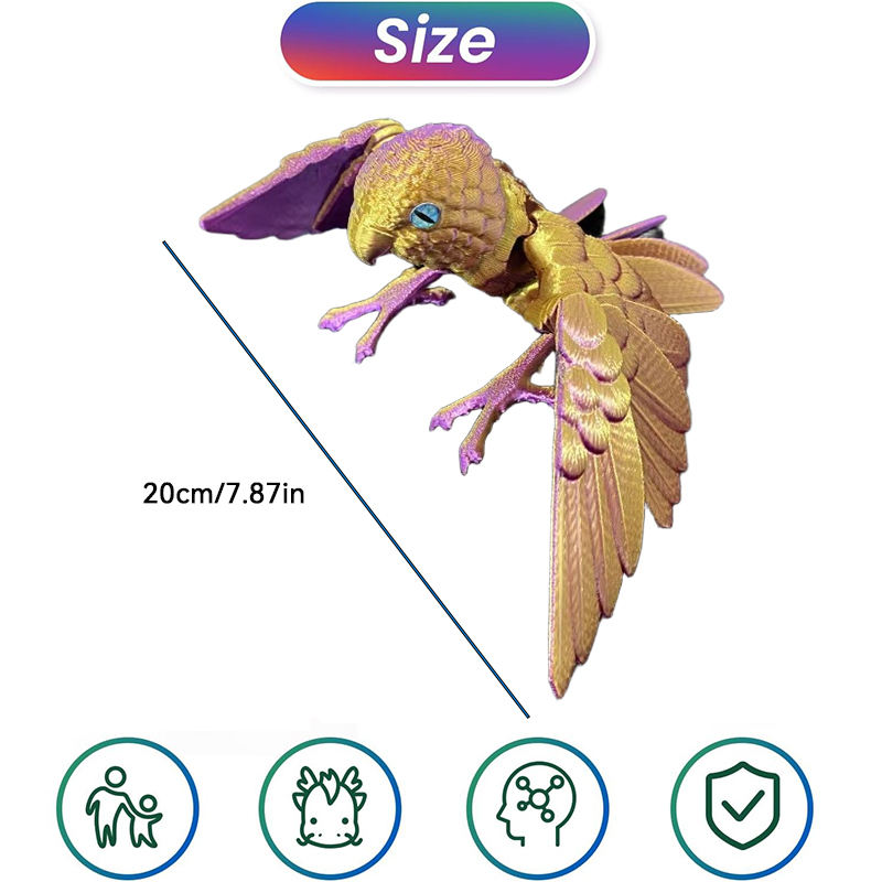 โมเดลนกแก้วแบบยืดหยุ่นพิมพ์ 3 มิติ พร้อมปีกขยับได้ ของตกแต่งบ้านและสำนักงาน ของเล่นน่าสนใจสำหรับเด็กออทิสติก สมาธิสั้น ของขวัญสำหรับเทศกาลต่างๆ