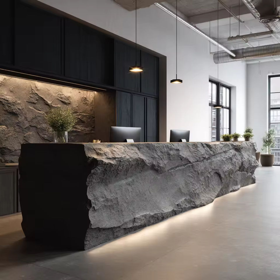 3D Printed PETG Plastic Commercial Modern Extendable Reception Desk for Hotel Office Building & Mall with Textured Surface