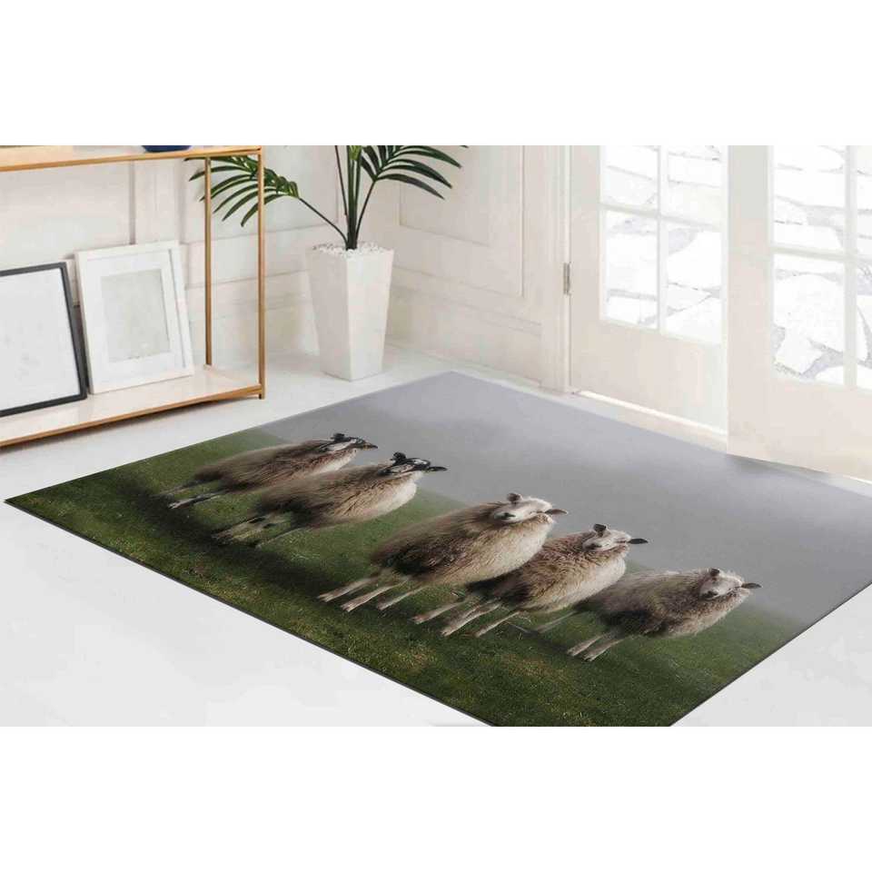 พรมแกะพิมพ์ลาย 3 มิติ: ของตกแต่งบ้านสไตล์ฟาร์มเฮาส์ พรมรูปสัตว์ พรมขนนุ่ม
