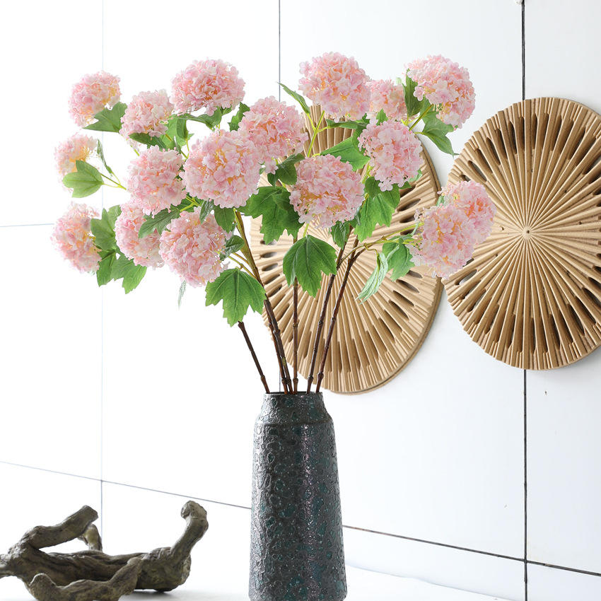 ดอกไฮเดรนเยียปลอมแบบพิมพ์ 3 มิติ ทำจากผ้าไหม ทรงลูกบอลหิมะ 3 หัว ก้านยาว สำหรับตกแต่งบ้าน งานแต่งงาน