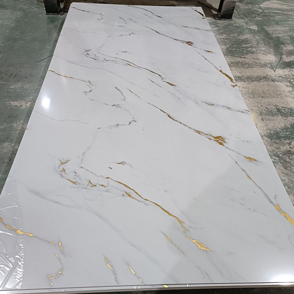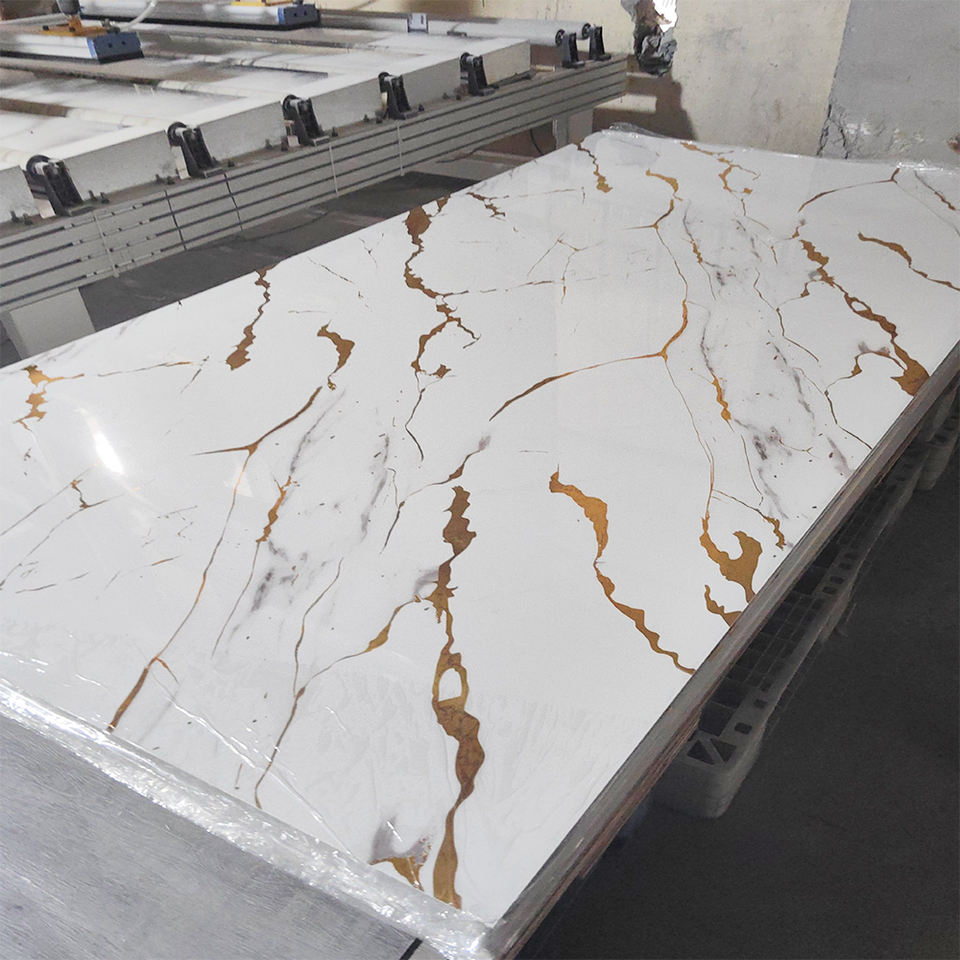 แผ่นพลาสติกพีวีซีติดผนังกันน้ำแผ่นหินอ่อนยูวีสำหรับตกแต่งบ้าน