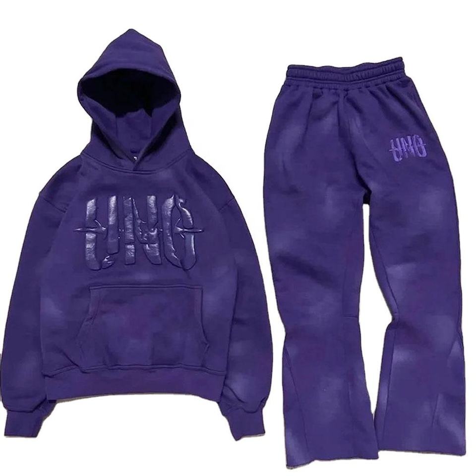 ชุดวอร์มกางเกงขาบานสำหรับผู้ชายพิมพ์ลาย3D กางเกงวอร์มสไตล์ฝรั่งเศสขาบานพร้อมฮู้ดกำหนดโลโก้เอง