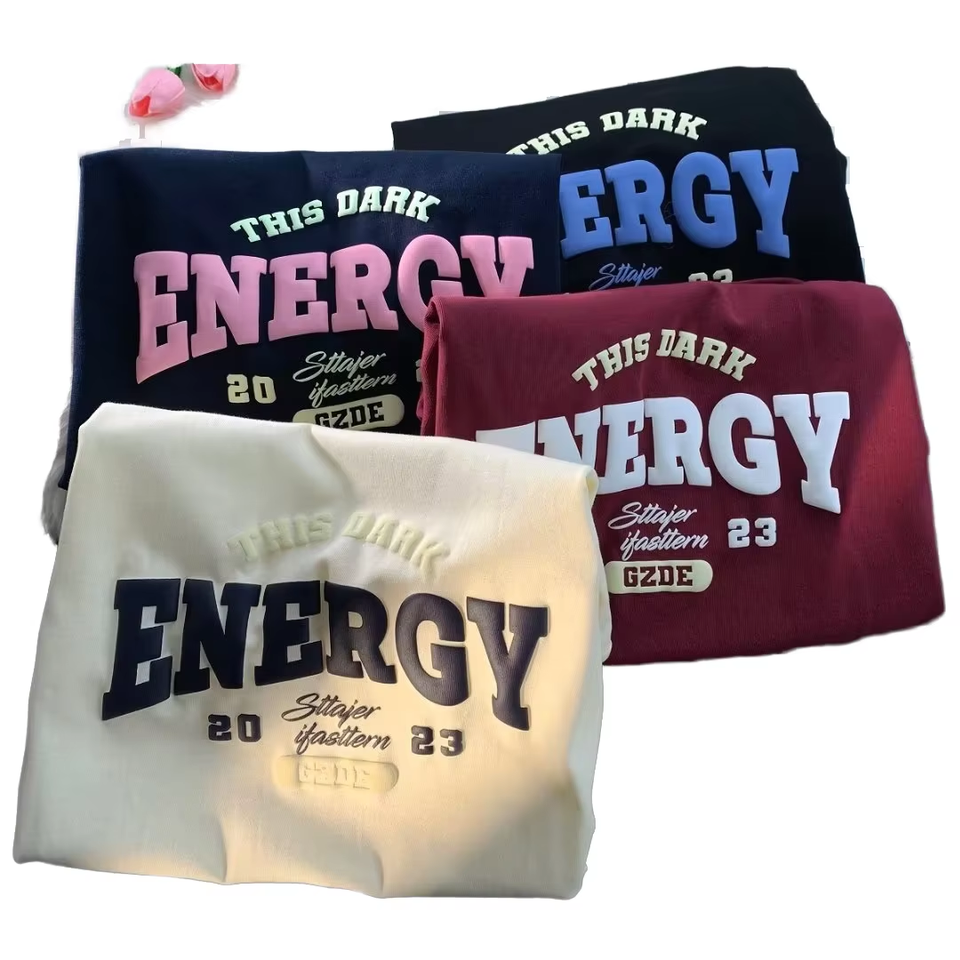 เสื้อยืดพิมพ์ลาย3D พัฟสำหรับผู้ชายเสื้อทีเชิ้ตทรงโอเวอร์ไซส์ผ้าฝ้ายออกแบบได้ตามต้องการ