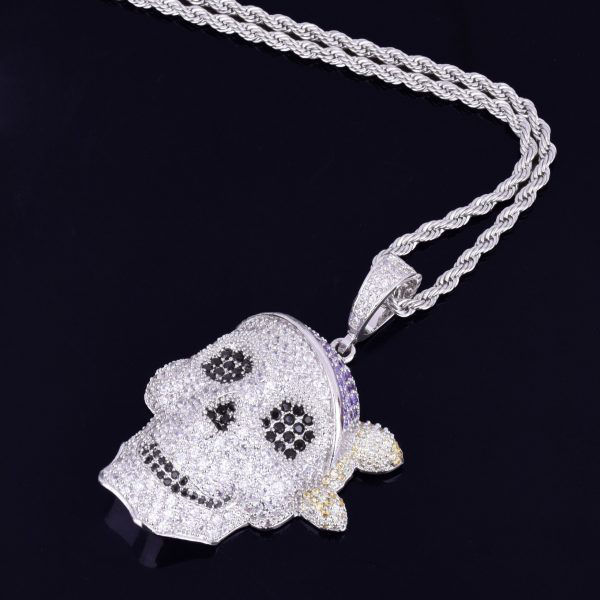 จี้ฮิปฮอปกระโหลก3D เงินแท้925ประดับเพชรโรเดียมชุบทองสำหรับผู้ทดสอบของขวัญ