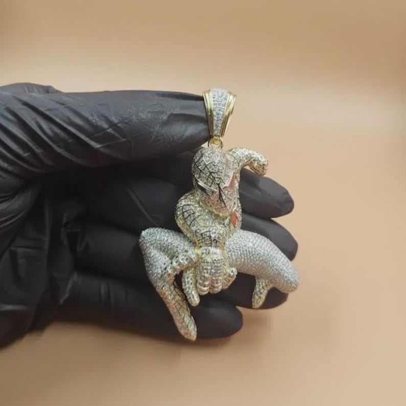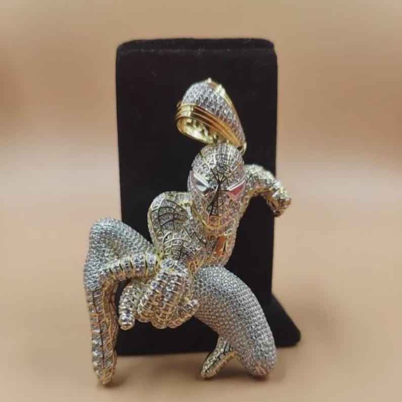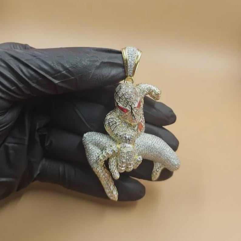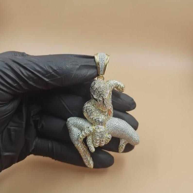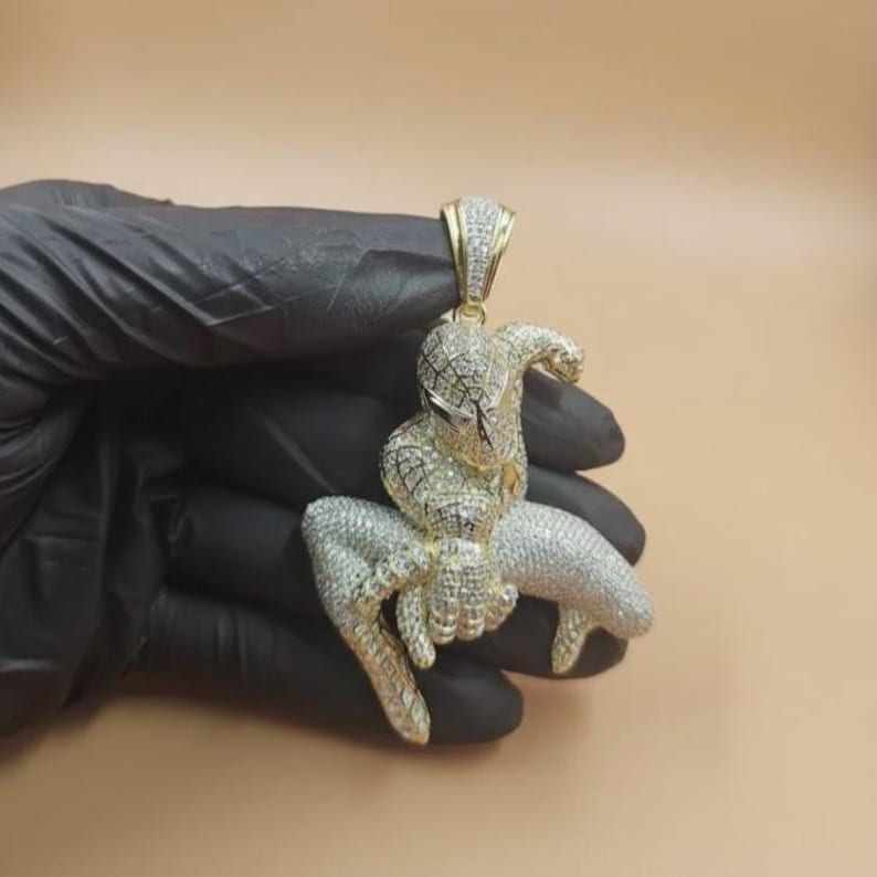 จี้รูปการ์ตูนสไปเดอร์แมน 3 มิติ เงินแท้ 925 ประดับมอสซาไนต์ ชุบโรเดียม/ทอง ดีไซน์หรูหรา สำหรับผู้ชาย ของขวัญวันเกิด สไตล์ฮิป