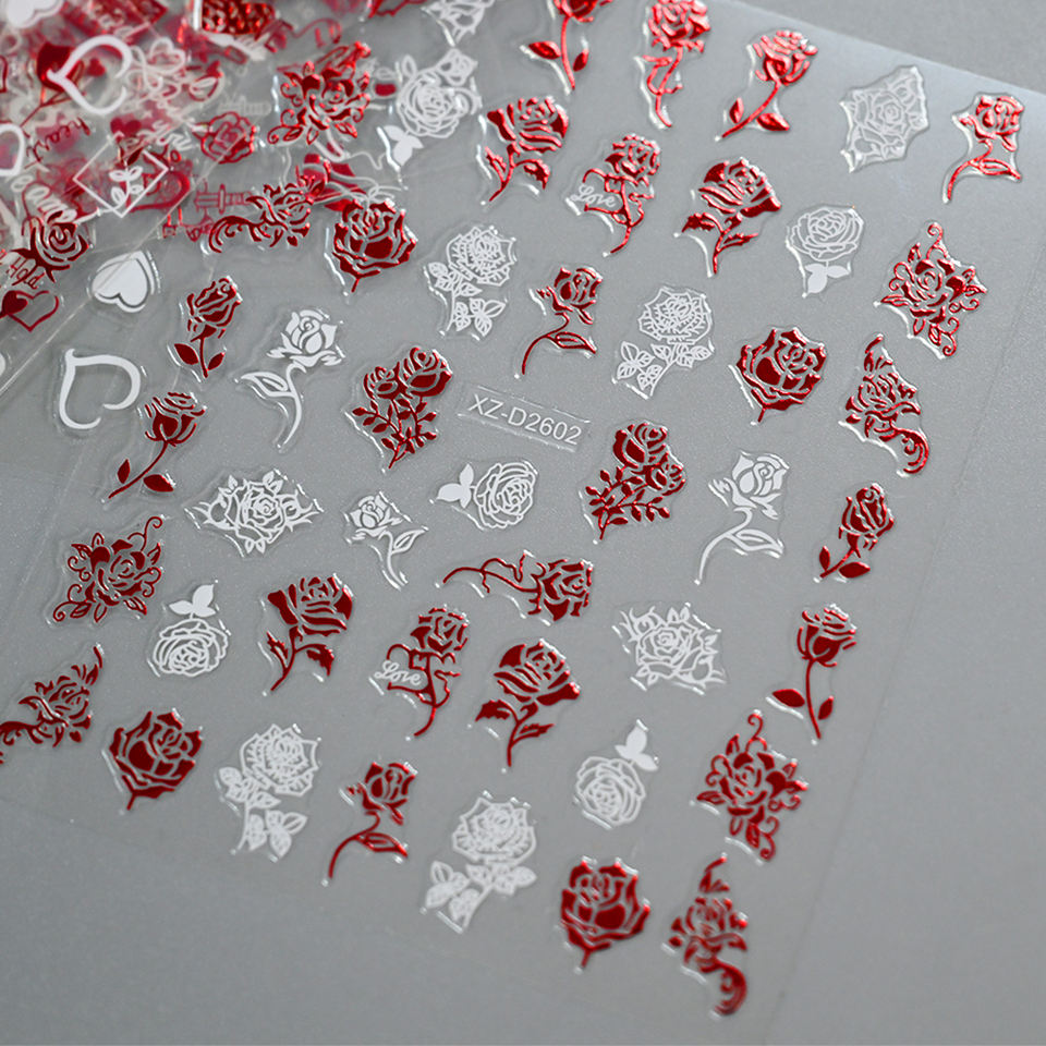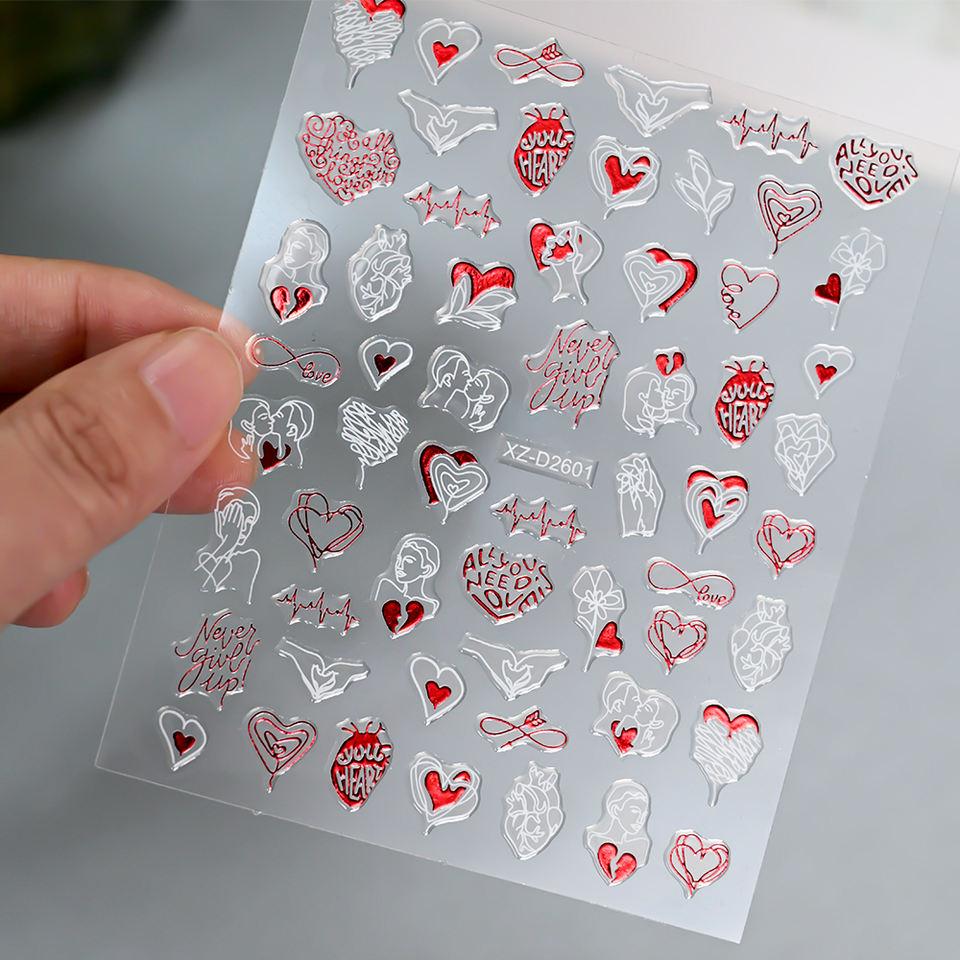 สติ๊กเกอร์เลื่อนเล็บสีแดงสำหรับเด็กผู้หญิง3D วันวาเลนไทน์สติกเกอร์ตกแต่งเล็บแบบมีกาวในตัว