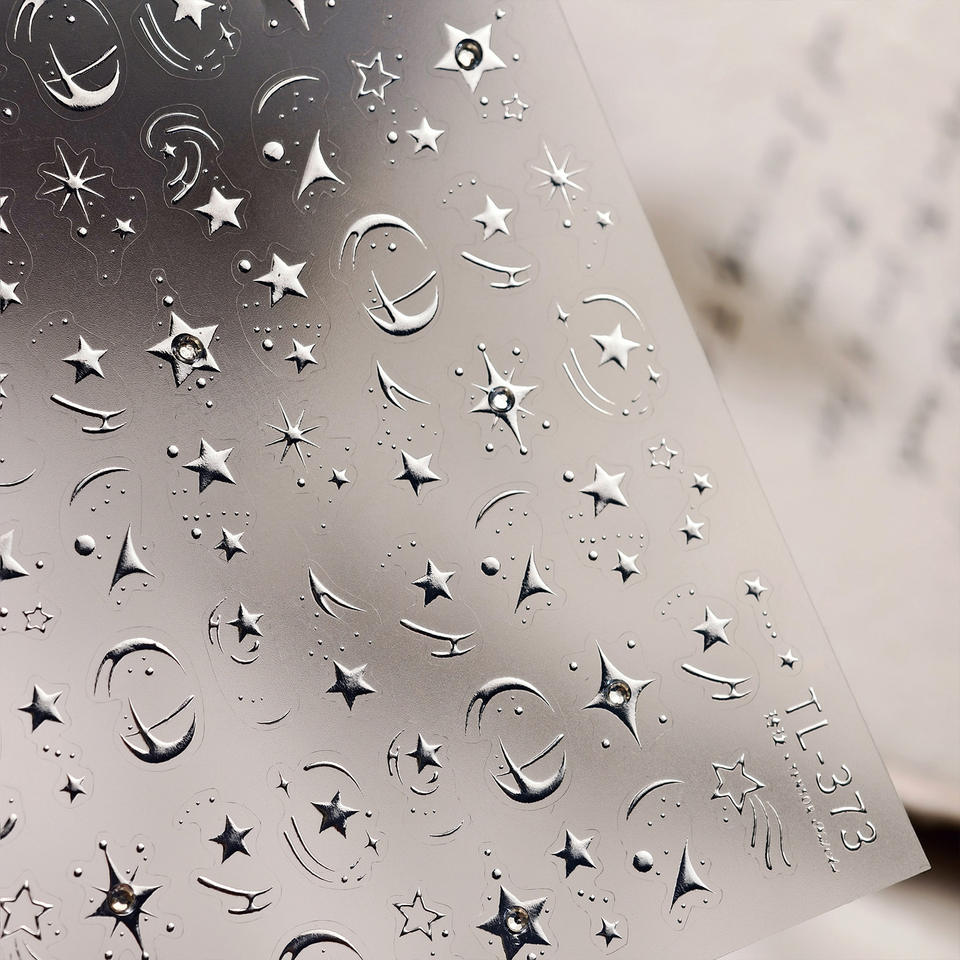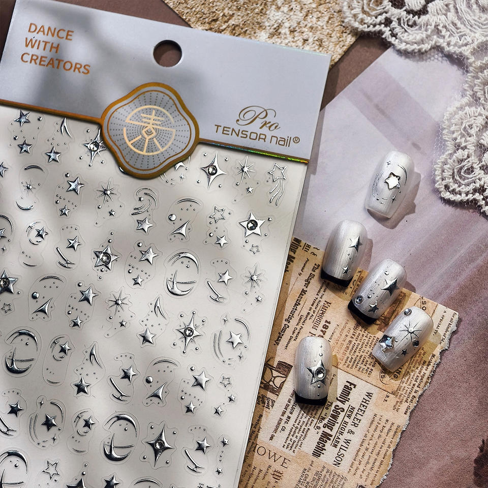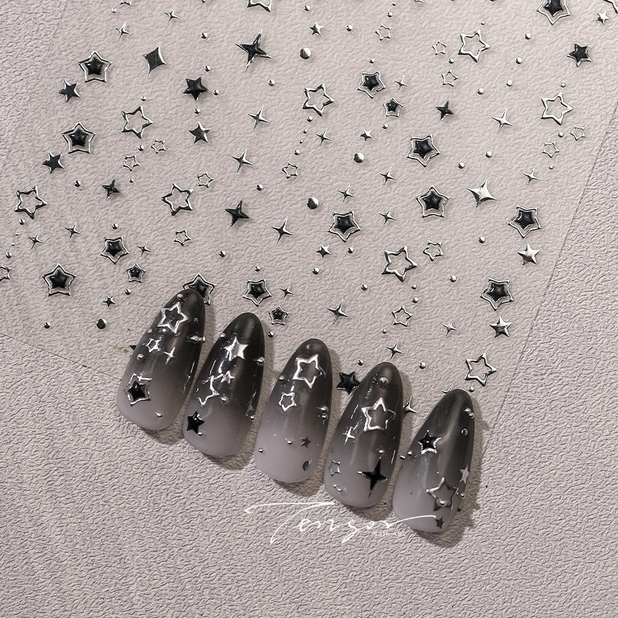 สติกเกอร์ตกแต่งเล็บแบบมีกาวประดับพลอยเทียมแวววาวทำจากเงิน3D Y2k ดาวและดาว