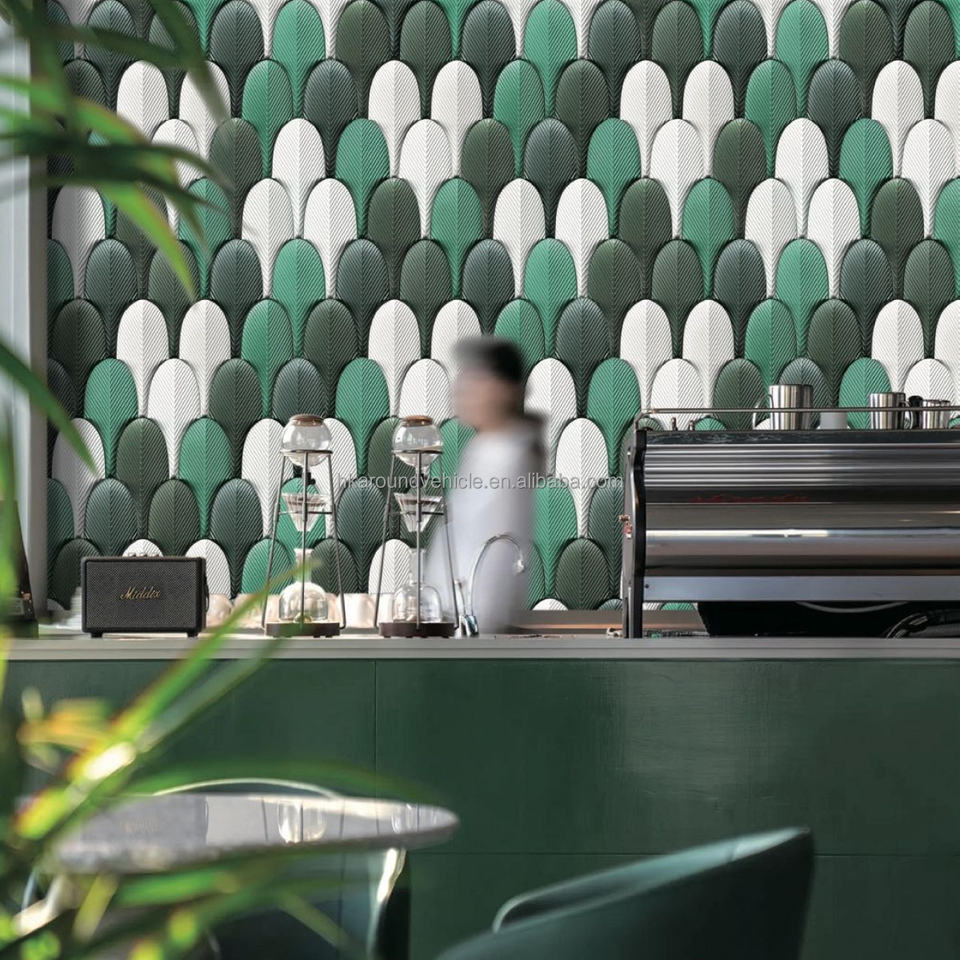 อิฐคอนกรีต 3 มิติ สีสันสดใส สำหรับตกแต่งผนังภายในและภายนอกห้องพัก โรงแรม ร้านค้า ติดตั้งง่าย ทนทาน รูปทรงใบไม้ ขนาด 300*300*13 มม.