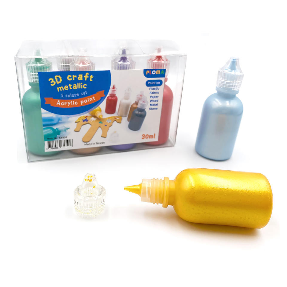 สีอะครีลิคเมทัลลิค3D ชุด8ชิ้น-สี8สีสำหรับผ้าใบแก้วและกระดาษ