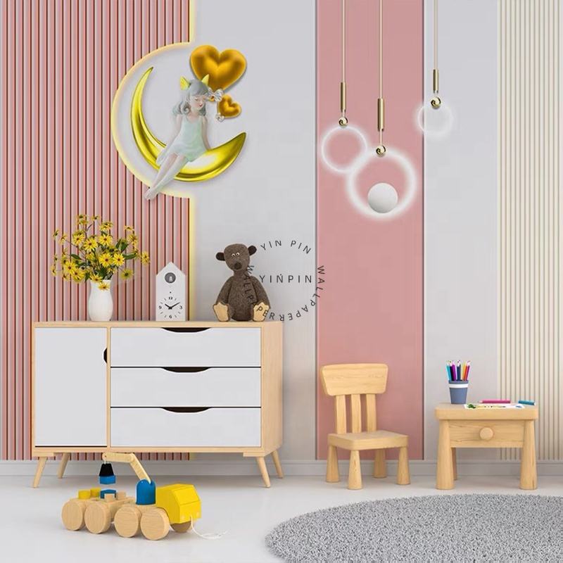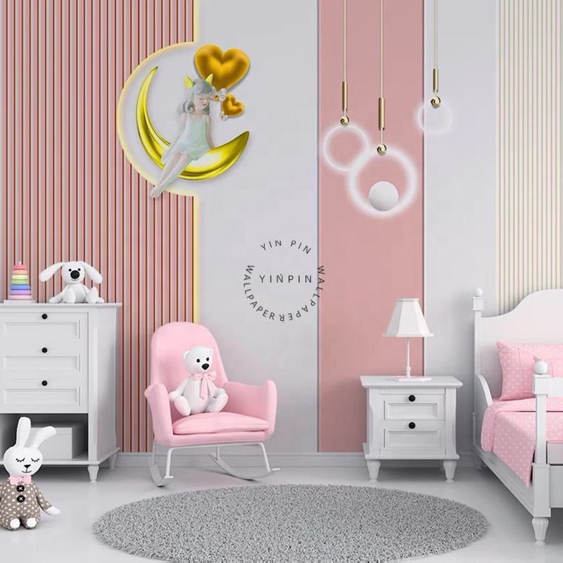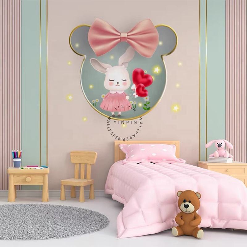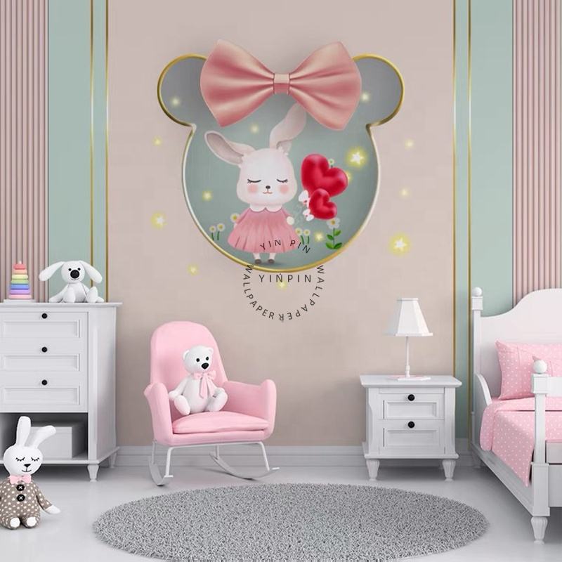 วอลล์เปเปอร์ภาพจิตรกรรมฝาผนังตกแต่งห้องเด็กกระต่ายสีชมพู3D