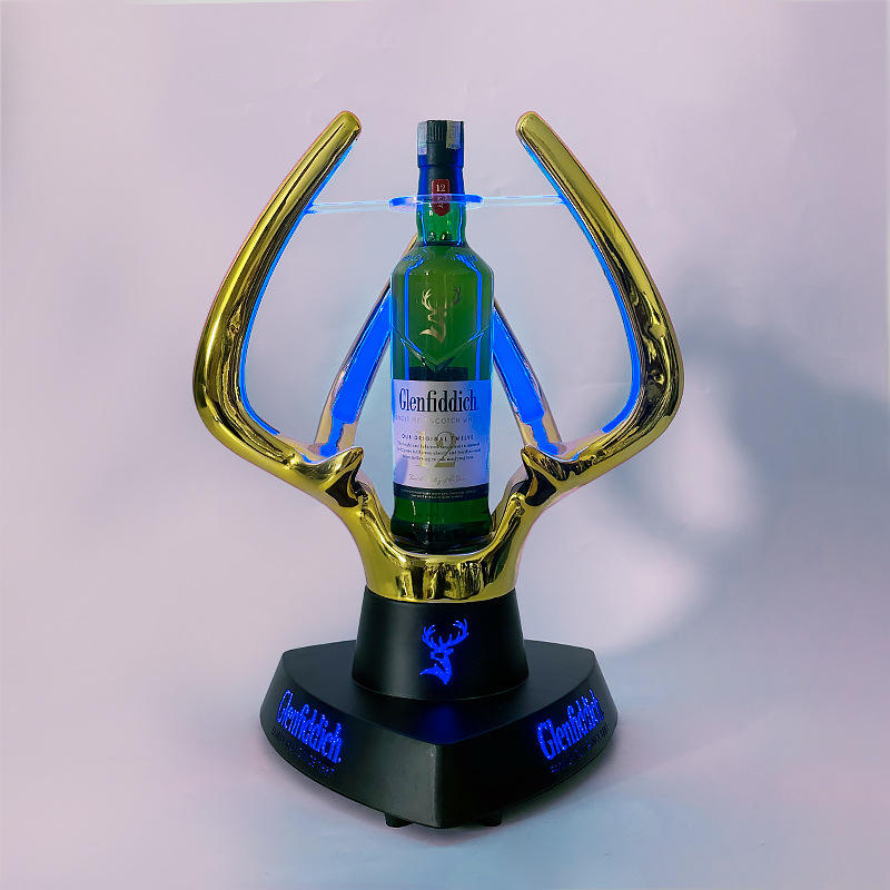 3D print resin plastic gold LED Light Glowing champagne whiskey Bottle Glorifier VIP service display Presenter for rum vodka