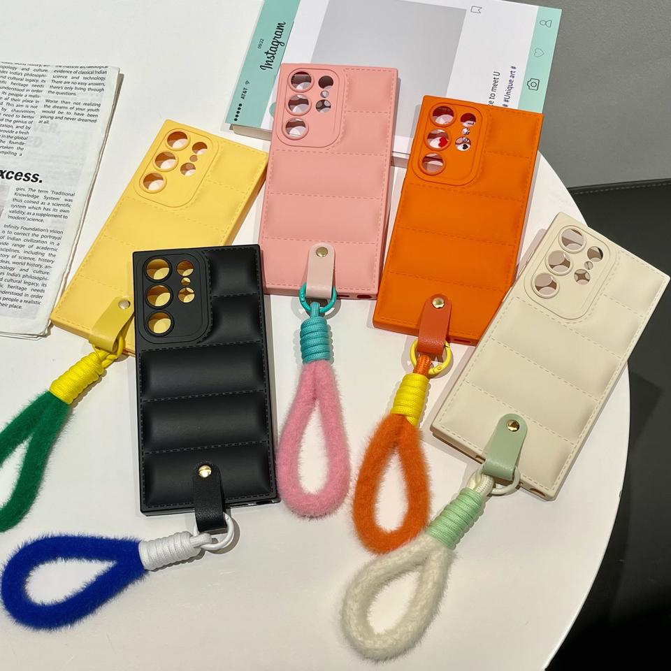 Product Name:3D The Puffer Soft TPU Phone Case Furry Wrist Chain Strap Cover