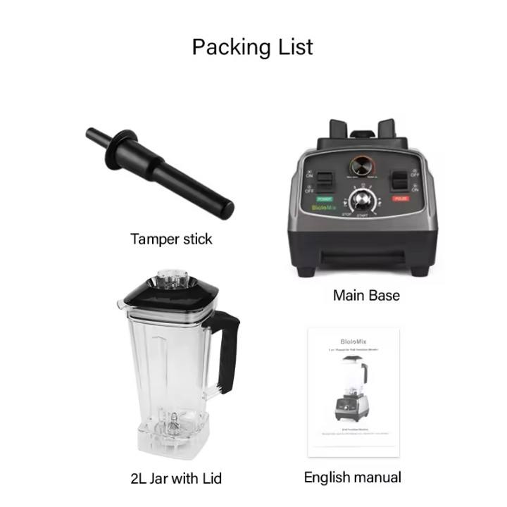 เครื่องปั่นอเนกประสงค์สำหรับงานหนัก 2200 วัตต์ ระดับเชิงพาณิชย์ 3 แรงม้า พร้อมตัวตั้งเวลา สำหรับปั่นผลไม้และอาหาร ปราศจากสาร BPA โถปั่นขนาด 2 ลิตร เหมาะสำหรับโรงแรมและครัวเรือน