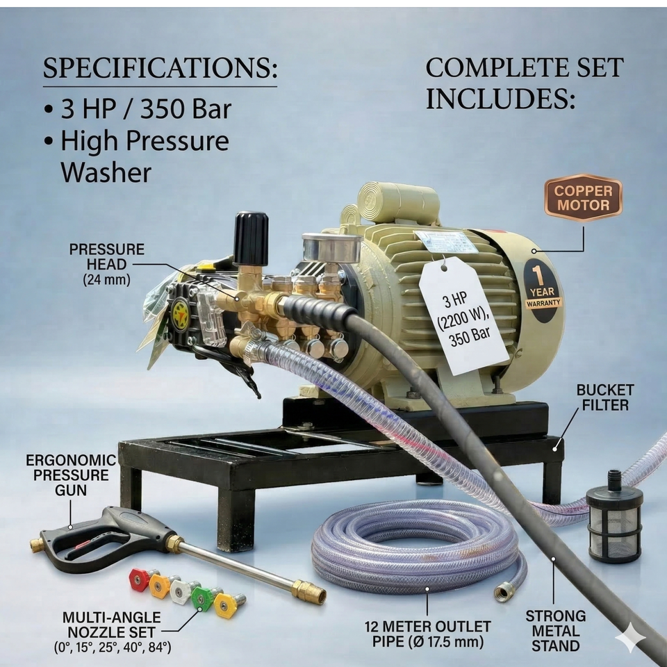 เครื่องฉีดน้ำแรงดันสูง 3 แรงม้า 350 บาร์ อุปกรณ์ทำความสะอาดขั้นสูง ระบบขับเคลื่อนปั๊มที่ทนทาน สำหรับสถานที่ซ่อมบำรุงยานยนต์