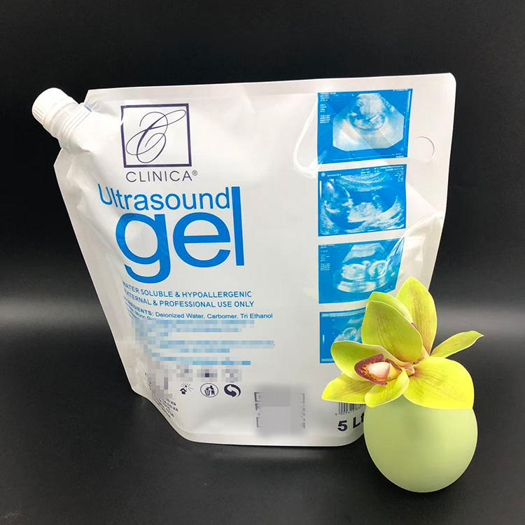 ถุงพลาสติก PE สีขาวนม5L 3L กระเป๋าถือแบบพกพาถุงยืนพร้อมพวยสำหรับของเหลวทางการแพทย์เจลอัลตราซาวนด์