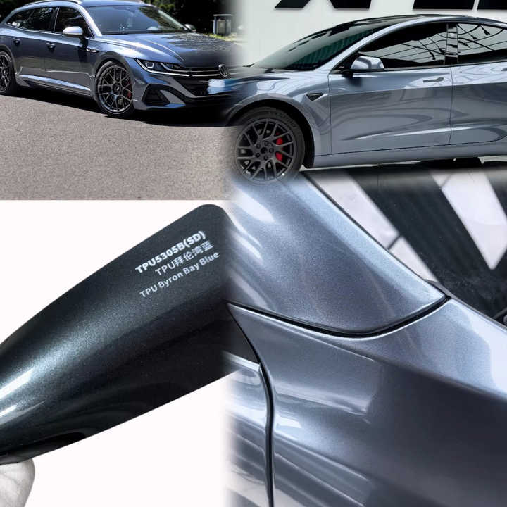 ฟิล์มเปลี่ยนสีรถยนต์ TPU คุณภาพสูง สีขาวเงา ป้องกันการเหลือง ขนาด 3M 1.52ม.*16.5ม. สำหรับหุ้มตัวถังรถยนต์ สีฟ้าไบรอนเบย์