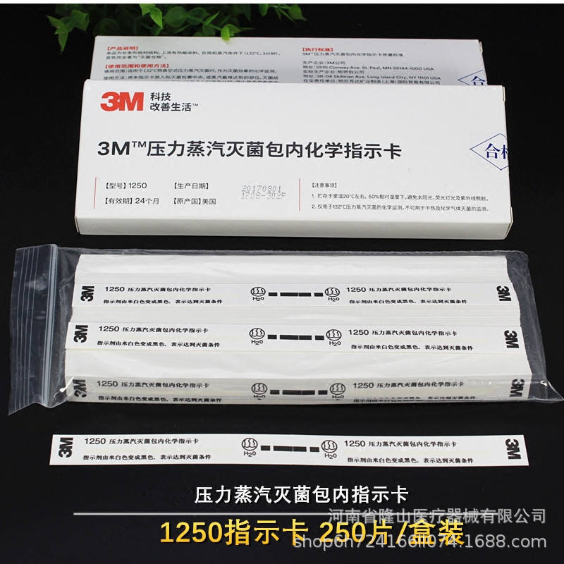 การ์ดวัดการฆ่าเชื้อด้วยไอน้ำสีขาว 3M รุ่น 1250 วัสดุโพลิเมอร์ แถบสารเคมีสำหรับใช้ในห้องปฏิบัติการ