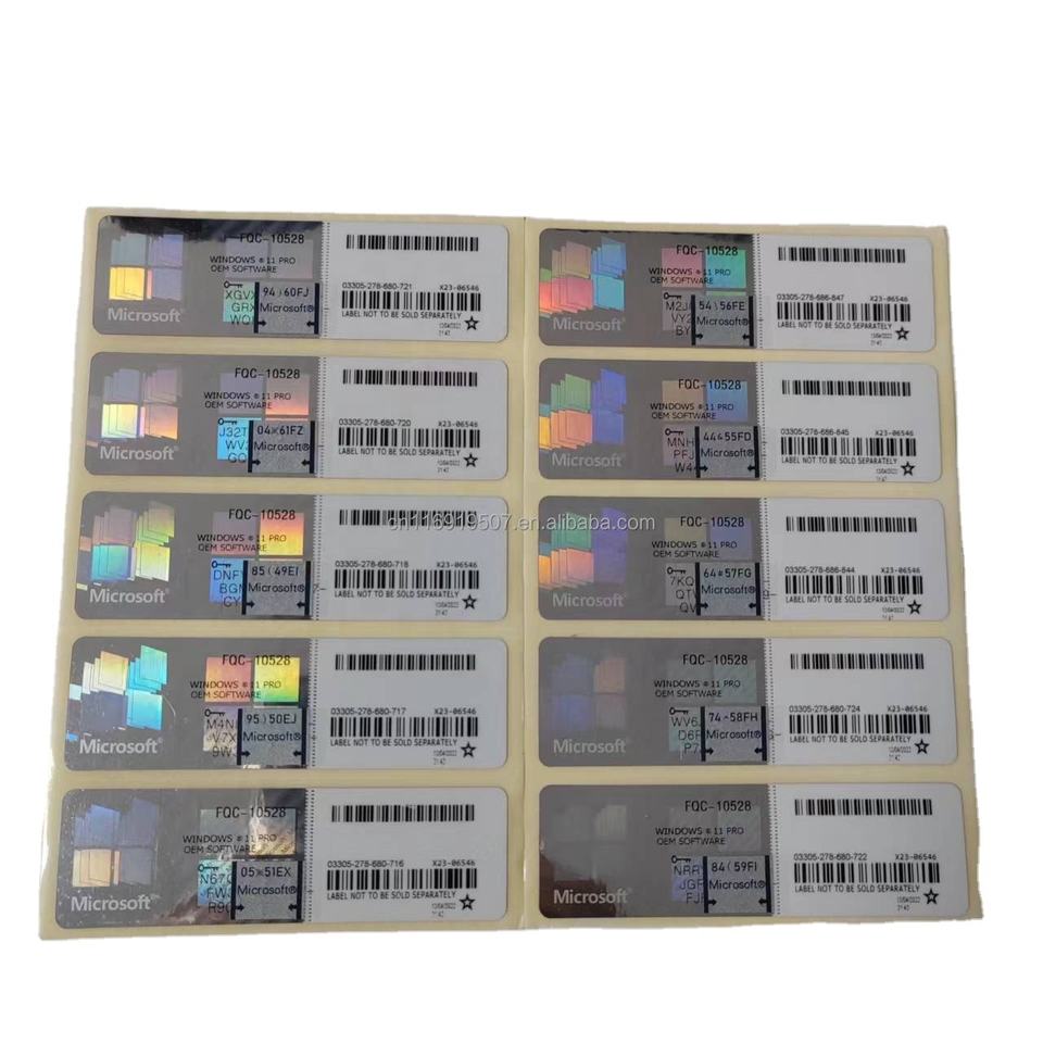 ระบบปฏิบัติการรับประกัน 3 เดือน ใบอนุญาต OEM ระดับมืออาชีพ เปิดใช้งานออนไลน์ ฉลากสีเงินสำหรับคีย์ Win 11 Pro รหัส PC สติ๊กเกอร์ COA