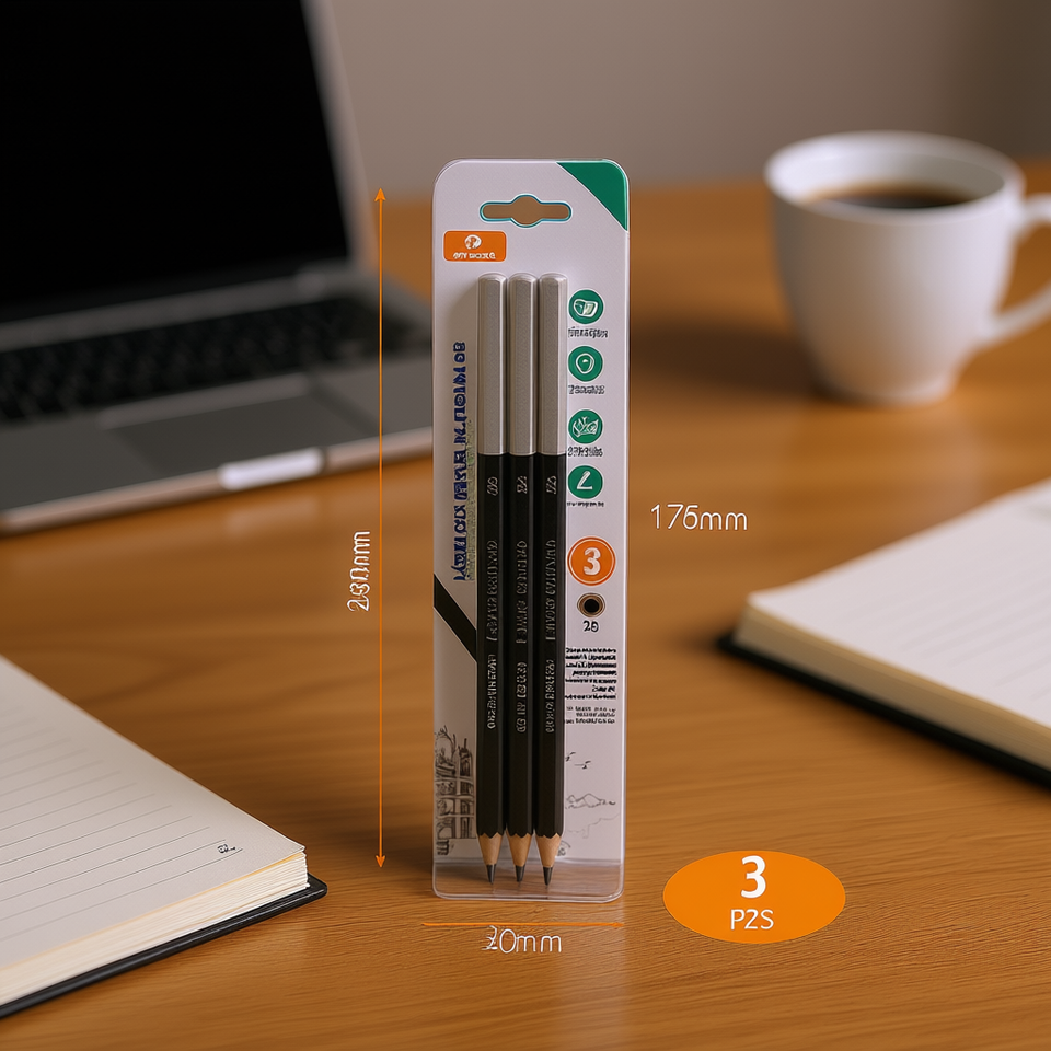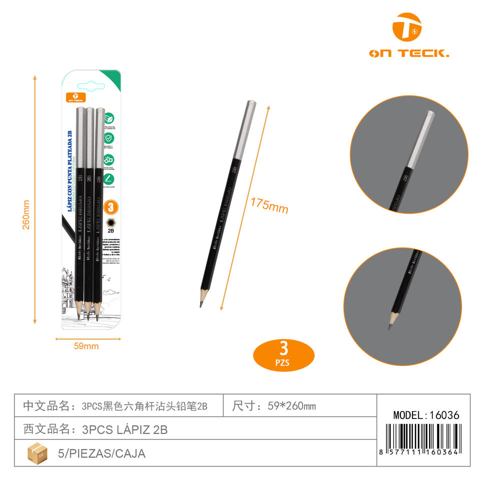 On Teck Hexagonal Pencil 2B 175mm Black Wood Office School Writing Tool 3Pcs Pack