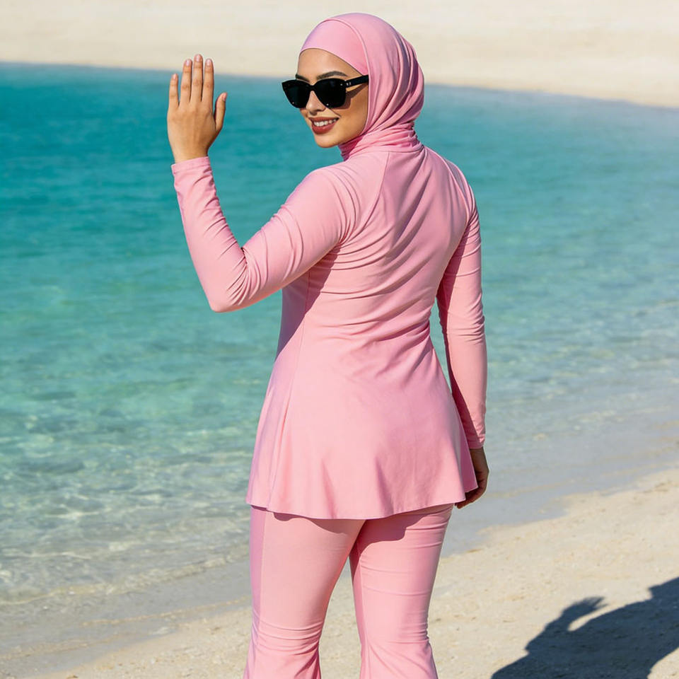 ชุดบุรกินี 3 ชิ้นสำหรับผู้หญิง ชุดว่ายน้ำอิสลามแบบสุภาพ เสื้อแขนยาว ฮิญาบ ปิดมิดชิด ชุดชายหาดสำหรับฤดูร้อน