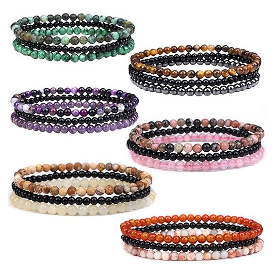 สร้อยข้อมือคริสตัลบำบัด 3 ชิ้น ขนาด 4 มม. สร้อยข้อมือหินธรรมชาติแบบยืดหยุ่น สร้อยข้อมืออเมทิสต์ เครื่องประดับพลอยกึ่งมีค่า สร้อยข้อมือประดับด้วยลูกปัด