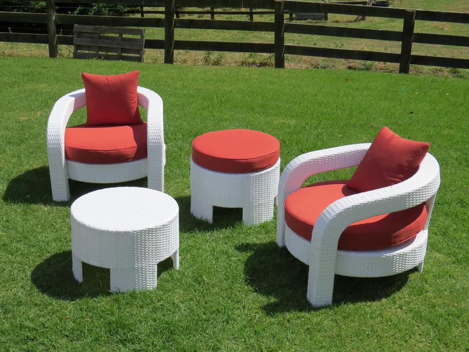 ชุดโซฟาสีขาวดีไซน์เป็นเอกลักษณ์:หวายหลายสี