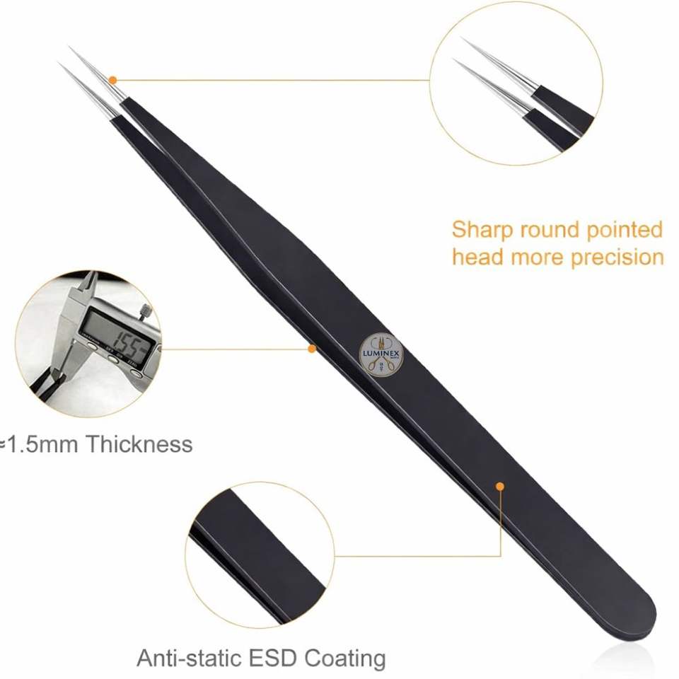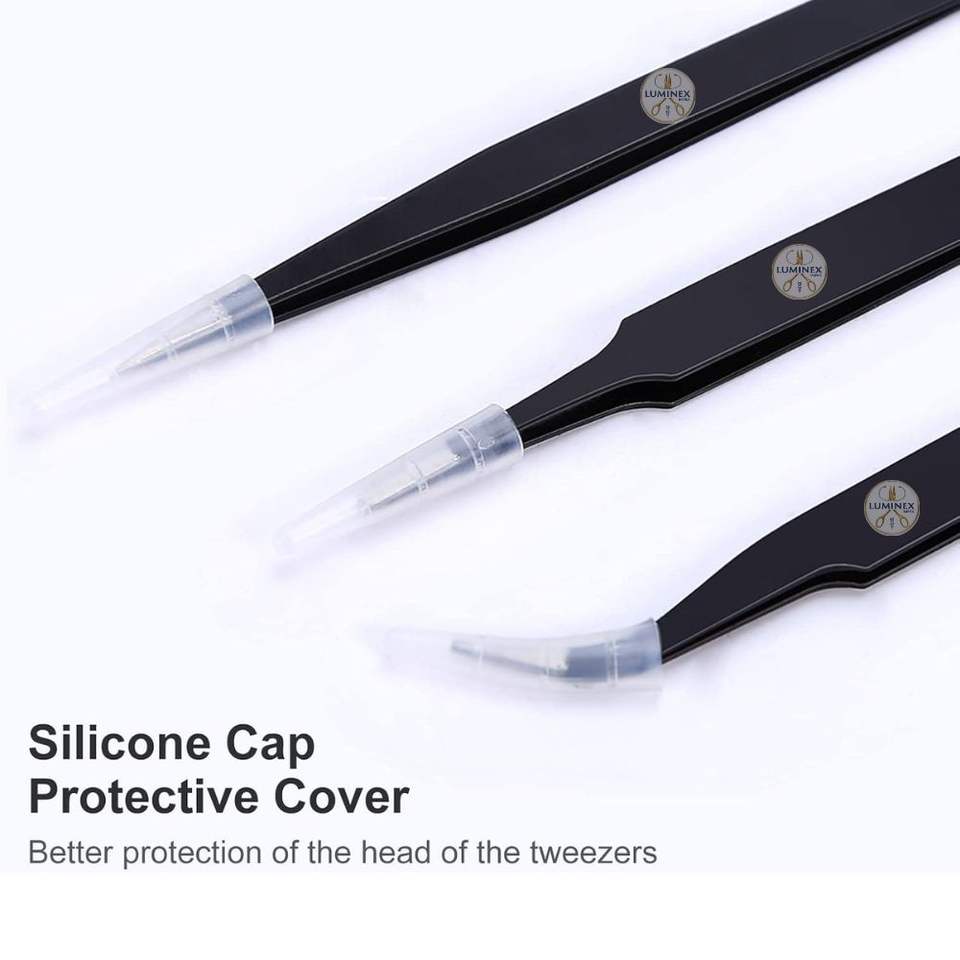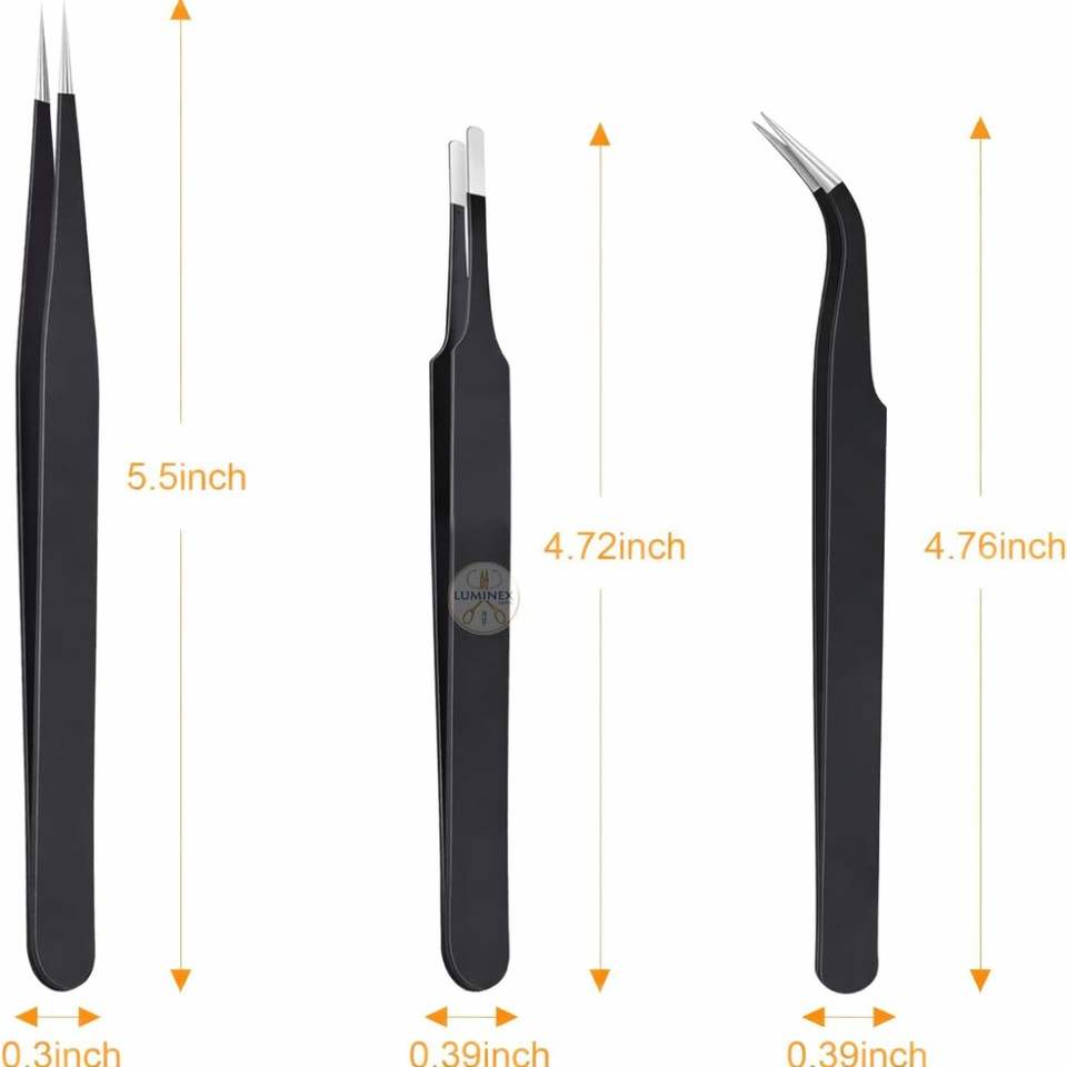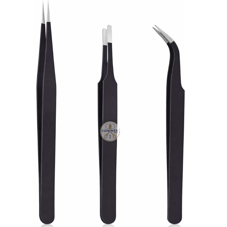 ชุดแหนบสแตนเลสคมกริบ 3 ชิ้น พร้อมด้ามจับพลาสติกป้องกันไฟฟ้าสถิต สำหรับใช้กับเส้นผม