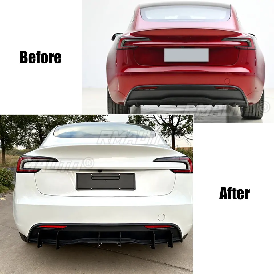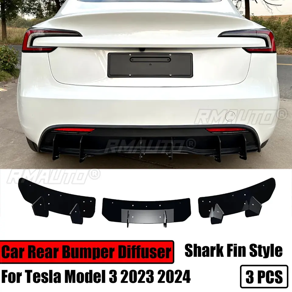ชุดแต่งกันชนหลังแบบครีบฉลามสีดำเงา 3 ชิ้น สำหรับรถยนต์เทสล่า โมเดล 3 ไฮแลนด์ ปี 2023 2024 อุปกรณ์ตกแต่งรถยนต์