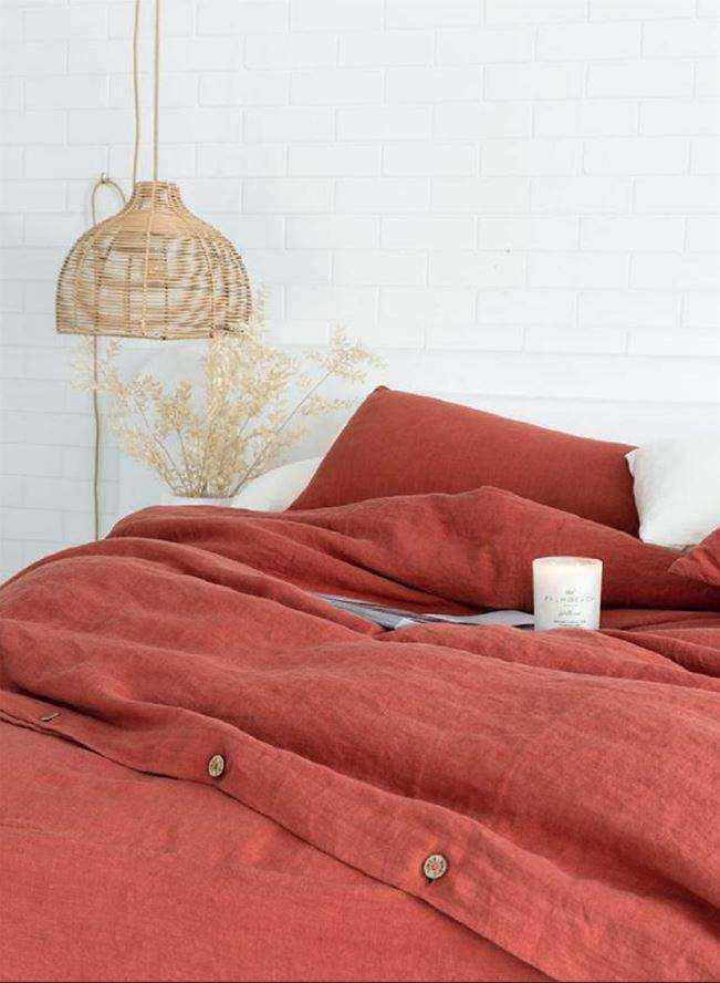 ชุดผ้าปูที่นอนโบโฮสีแดง 3 ชิ้น พร้อมปลอกหมอน 2 ใบ ผ้าฝ้ายสโตนวอช 300 เส้นด้าย ขนาดคิงไซส์ รุ่นดอนน่า สำหรับใช้ในบ้าน