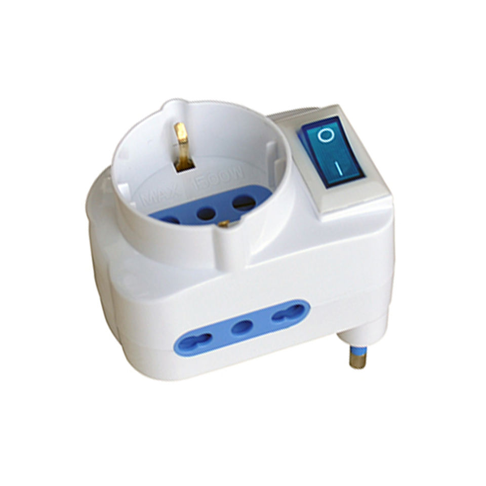 3Pos Bipasso/Schuko Plug in 16A Salvaspazio 3-way Power Adapter with Interlock Compact Space-Saving Option