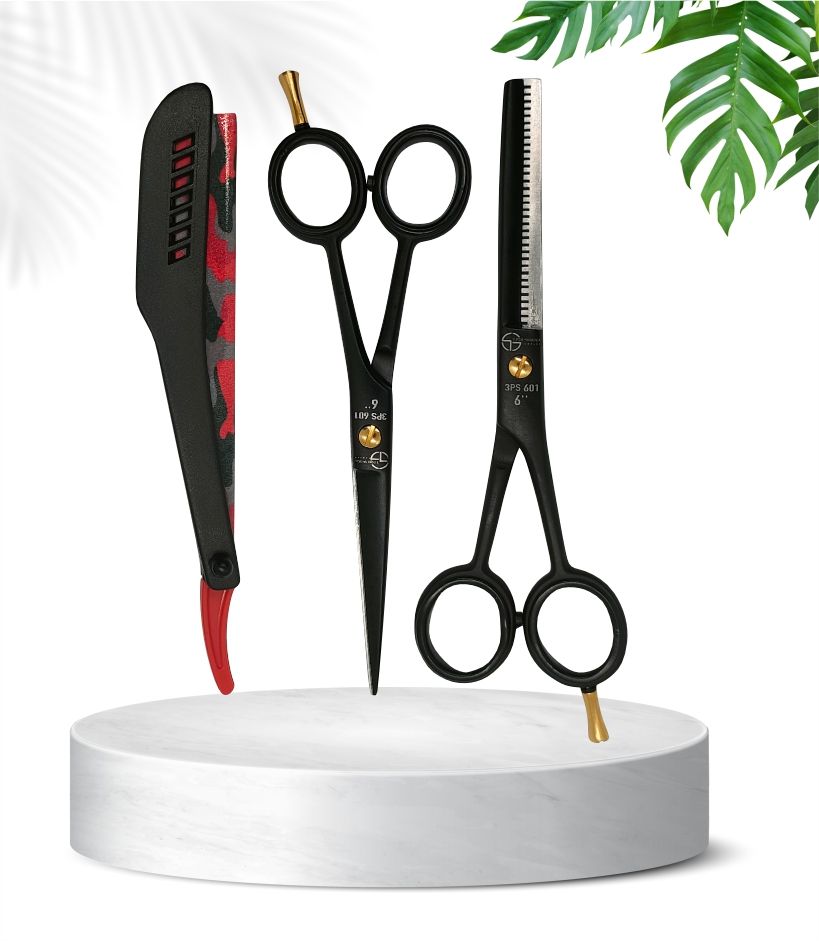 ชุดเสริมสวยสีดำสำหรับผ่าตัดแบบ3Pro กรรไกรตัดตรงใบมีดสแตนเลสคมสำหรับร้านทำผม28ซี่