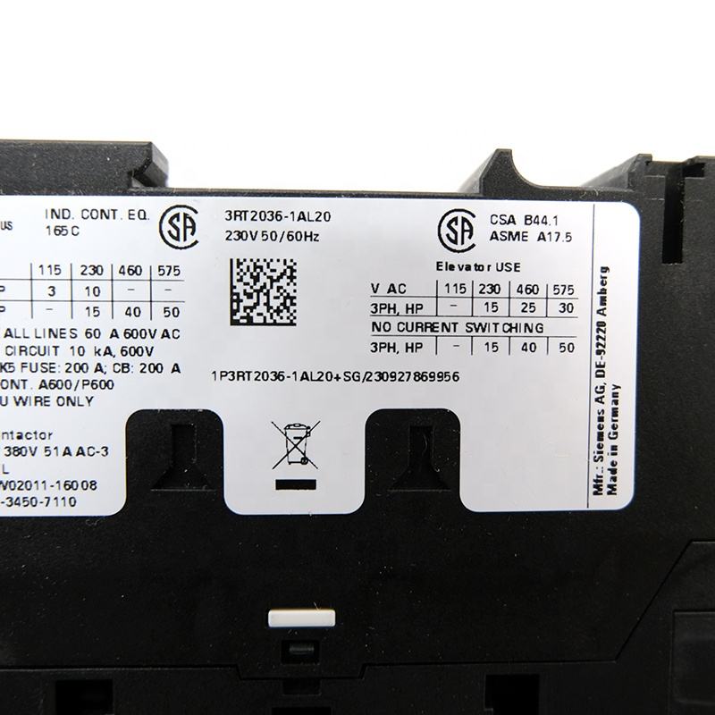 คอนแทคเตอร์ 3RT2036-1AL20-1AA0 ราคาดีและเป็นของแท้ บล็อกคอนแทคเทอร์มินัล คอนแทคเตอร์แบบโมดูลาร์แรงดันต่ำ 3RT2036-1AL20-1AA0
