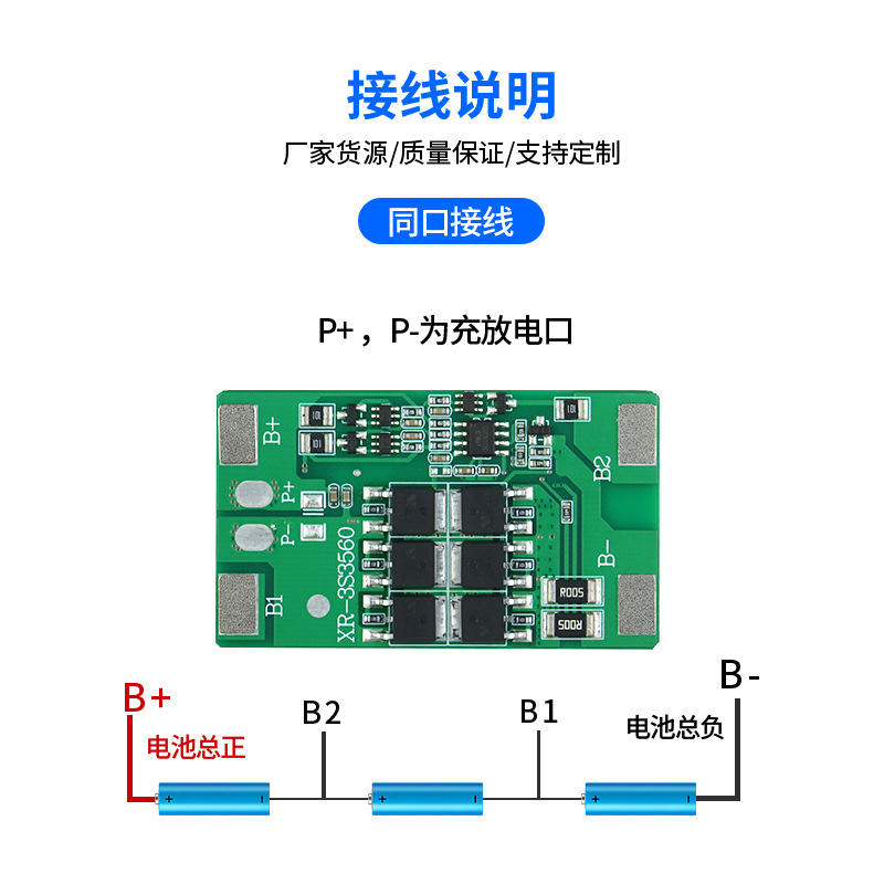 3S 12.6V 10A 15A สำหรับแบตเตอรี่ลิเธียมไอออน 3.7V ชนิดเทอร์นารี NMC พร้อมระบบบาลานซ์ชาร์จและดิสชาร์จ พอร์ตเดียวกัน รุ่น G952