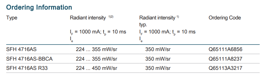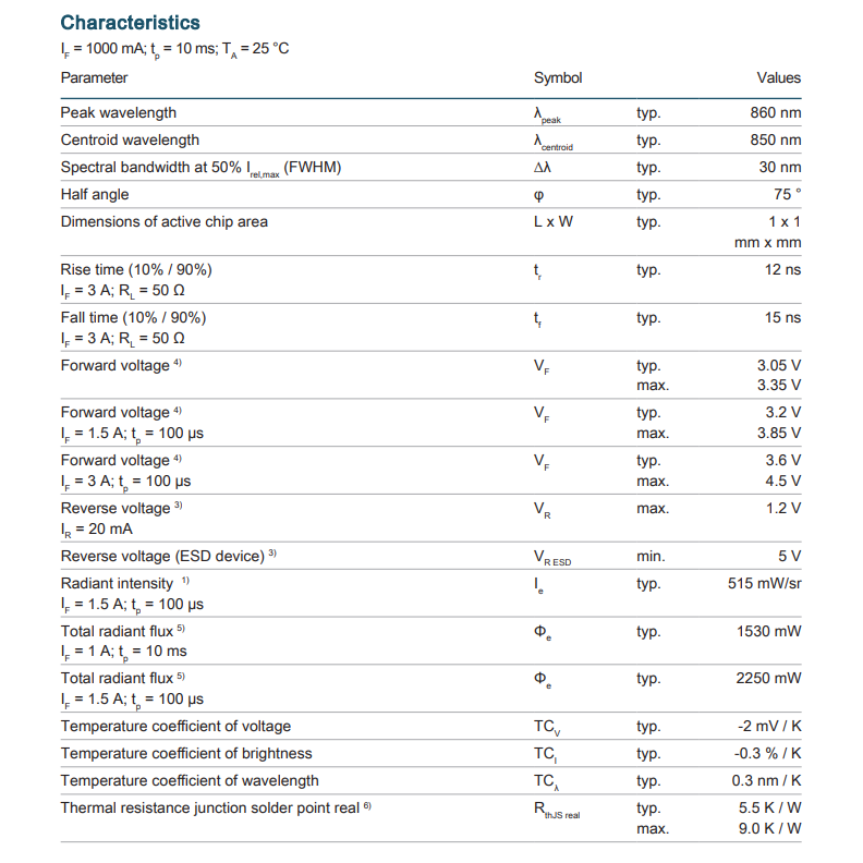 หลอดไฟ LED อินฟราเรด 3V 1500mA 5-6W SMD 3535 150 องศา 850nm รุ่น SFH 4716AS-BBCA