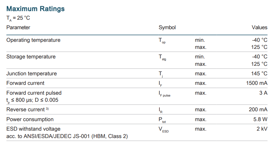 ระยะกระแสไปข้างหน้า @ 25 ℃:1500mA สูงสุด