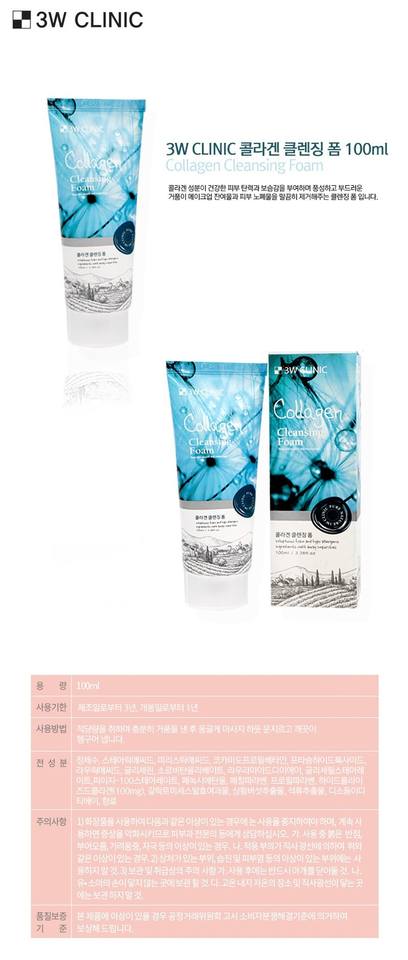 3W CLINIC โฟมล้างหน้าคอลลาเจน 100 มล. โฟมล้างหน้าเกาหลี โฟมล้างหน้าเข้มข้น ขจัดคราบเครื่องสำอาง บำรุงผิวชุ่มชื้น