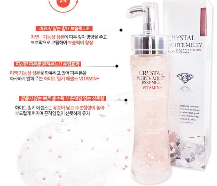 3W CLINIC คริสตัล ไวท์ มิลค์กี้ เอสเซนส์ วิตามิน+ 150 มล. ผลิตภัณฑ์ดูแลผิวหน้าจากเกาหลี ช่วยปรับสีผิวให้กระจ่างใส เอสเซนส์บำรุงผิวชุ่มชื้น B-BRO
