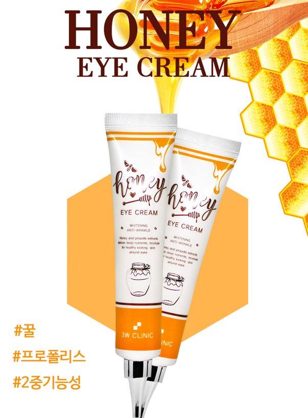 3W CLINIC HONEY EYE CREAM 40 มล. ของแท้จากเกาหลี ผลิตภัณฑ์บำรุงผิวหน้าสูตรน้ำผึ้ง บำรุงผิว ลดเลือนริ้วรอย ช่วยให้ผิวขาวกระจ่างใส