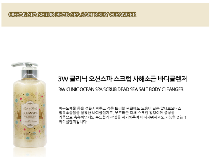 3W CLINIC ออเชียน สปา สครับเกลือเดดซี ผลิตภัณฑ์ทำความสะอาดผิวกาย ขัดผิว บำรุงผิวชุ่มชื้น ครีมอาบน้ำ เคบิวตี้ เครื่องสำอางเกาหลี