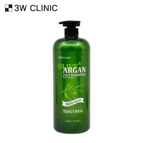 3W คลินิก โอลีฟ แอนด์ อาร์แกน 2-อิน-1 มอยส์เจอร์ไรซิ่ง แชมพู 1500 มล. ผลิตภัณฑ์ดูแลเส้นผมออร์แกนิกชนิดน้ำ