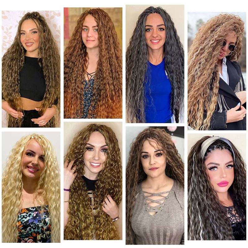 ประเภท:รัสเซีย ลอนคลื่นลึกแบบหลวม ยาวพิเศษ วิกผมสังเคราะห์ลอนหยิก