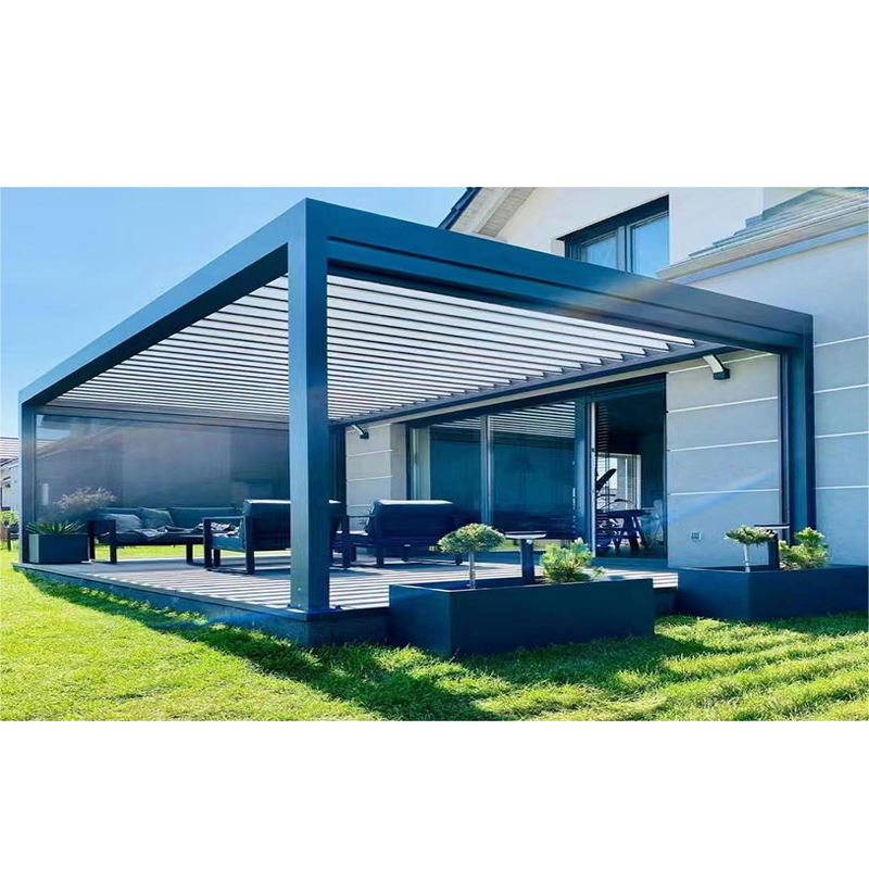 เฟอร์นิเจอร์ 3x3 3x4 โมเดิร์นหรูหรา เต็นท์มอเตอร์ไฟฟ้า กันน้ำ หลังคาคลุมสวนกลางแจ้ง อลูมิเนียมเพอร์โกลา