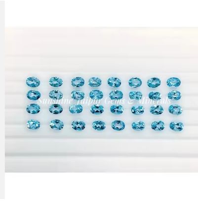 "3X5mm ทรงรีสีฟ้าบุษราคัม" พลอยทรงหลวมเจียระไนแบบธรรมชาติราคาโรงงาน