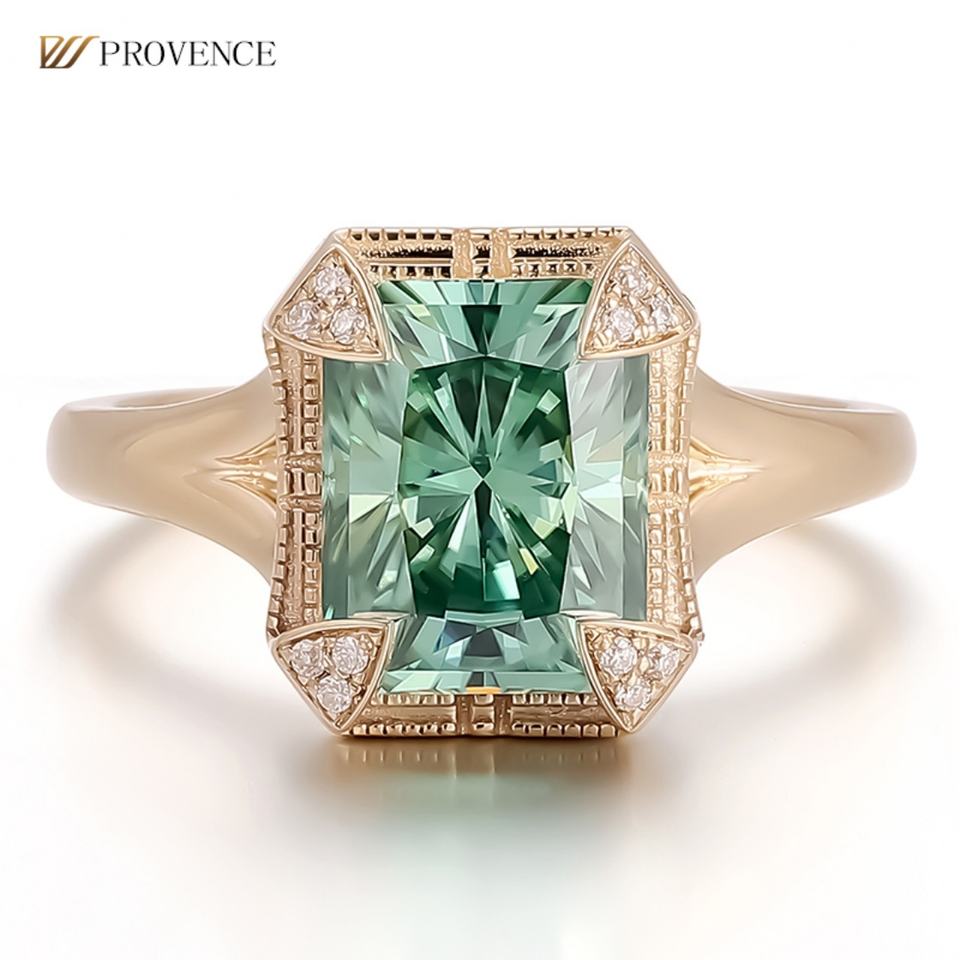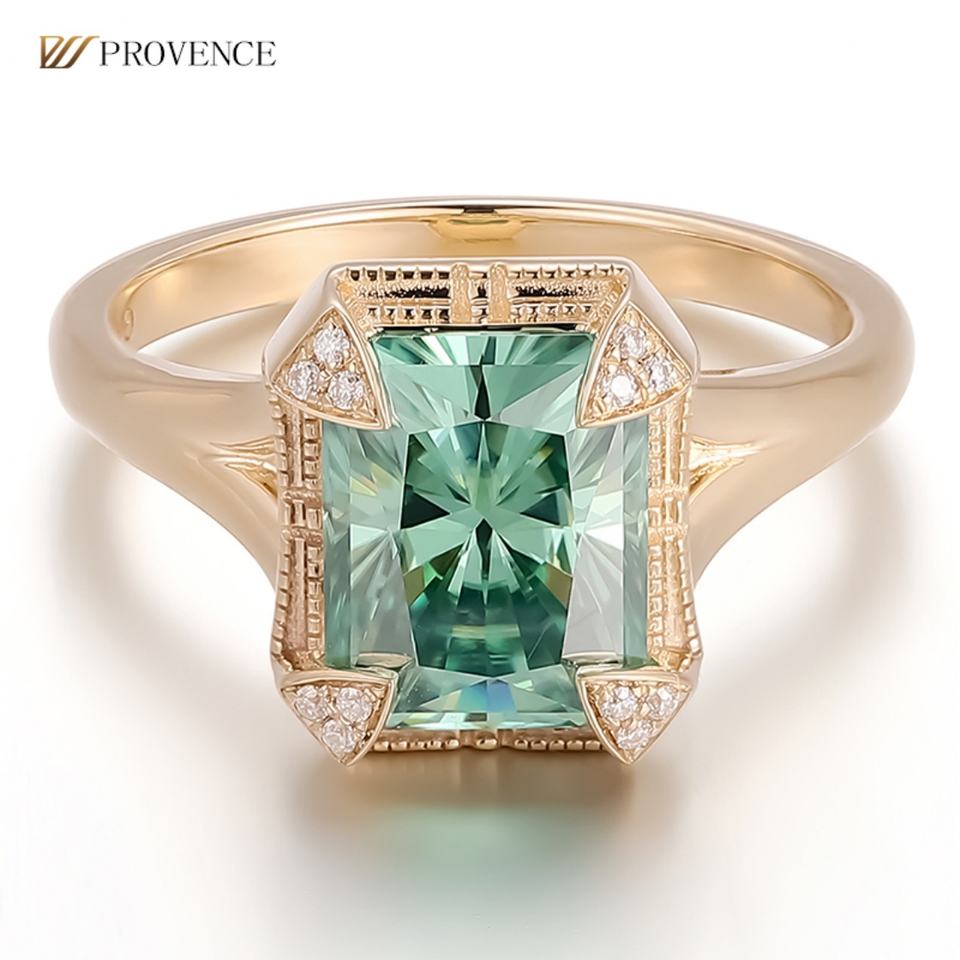 แหวนมอสซาไนต์สีเขียวทรงเรเดียนท์ 3 กะรัต ปี 2025 ผลิตตามสั่งจากโรงงาน ทองแท้ 10K 14K 18K แหวนแต่งงาน ของขวัญสำหรับผู้หญิง