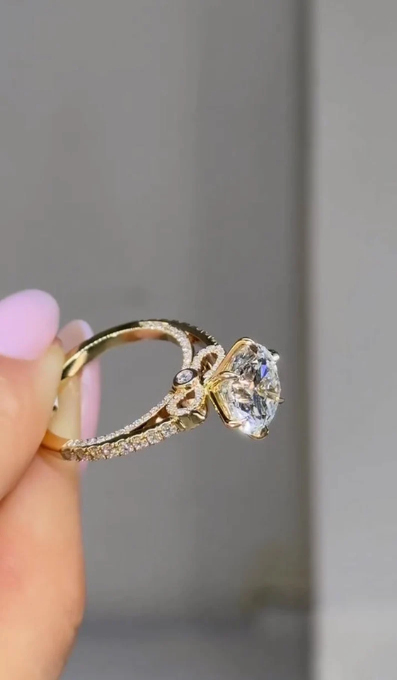 แหวนเพชรโมอิสทรงกลมสไตล์3ct สำหรับสตรีเครื่องประดับแฟชั่น