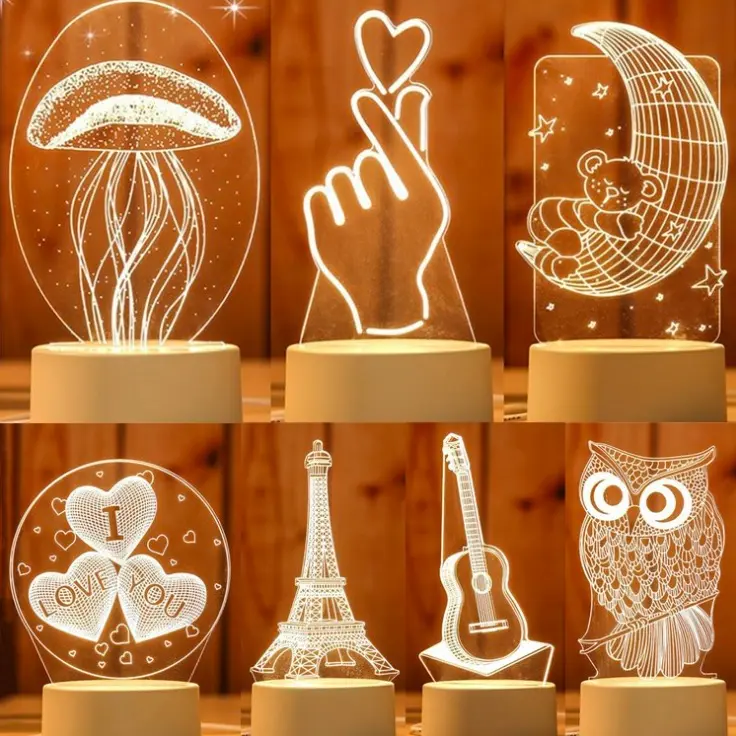 ภาพลวงตา3d ไฟกลางคืน3มิติ,โคมไฟสามมิติอะคริลิ3d ตกแต่งลายการ์ตูนภาพลวงตาใส่นอนตอนกลางคืน