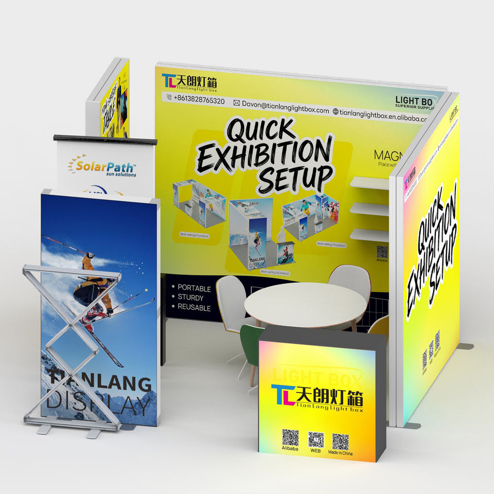บูธแสดงสินค้าแบบพับได้ 3 นาที ไม่ต้องประกอบ อุปกรณ์จัดแสดงสินค้าแบบพกพา ระบบจัดแสดงสินค้าแบบโมดูลาร์ ร้านค้าแบบป๊อปอัพ